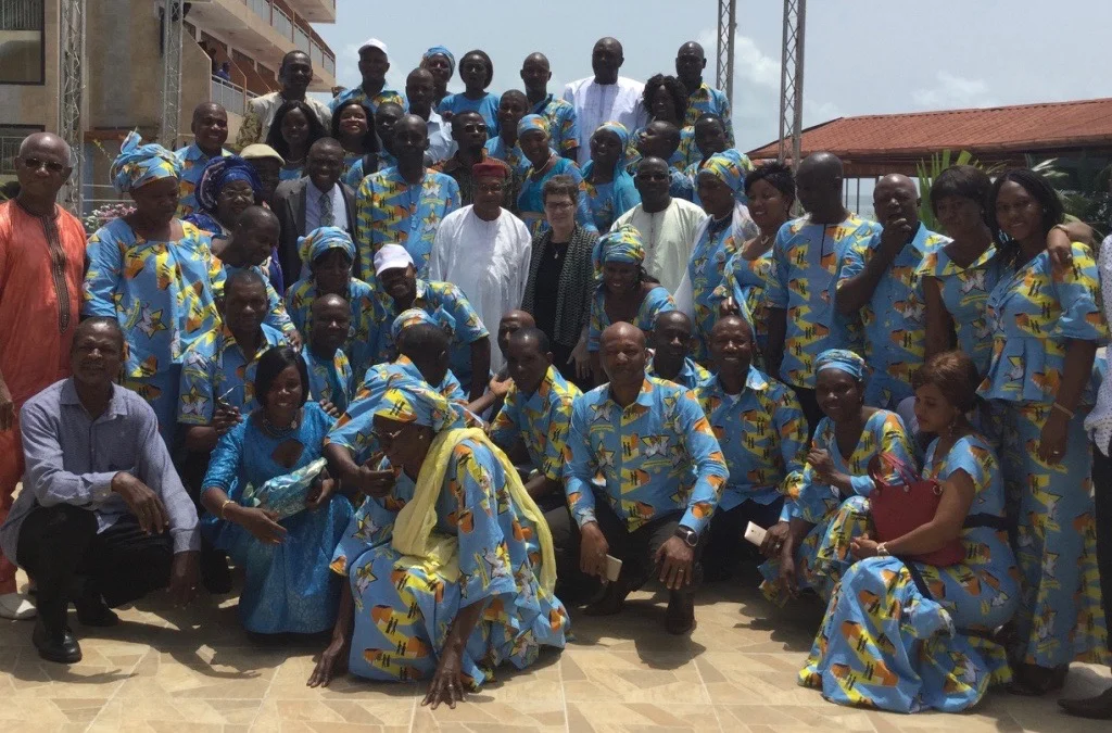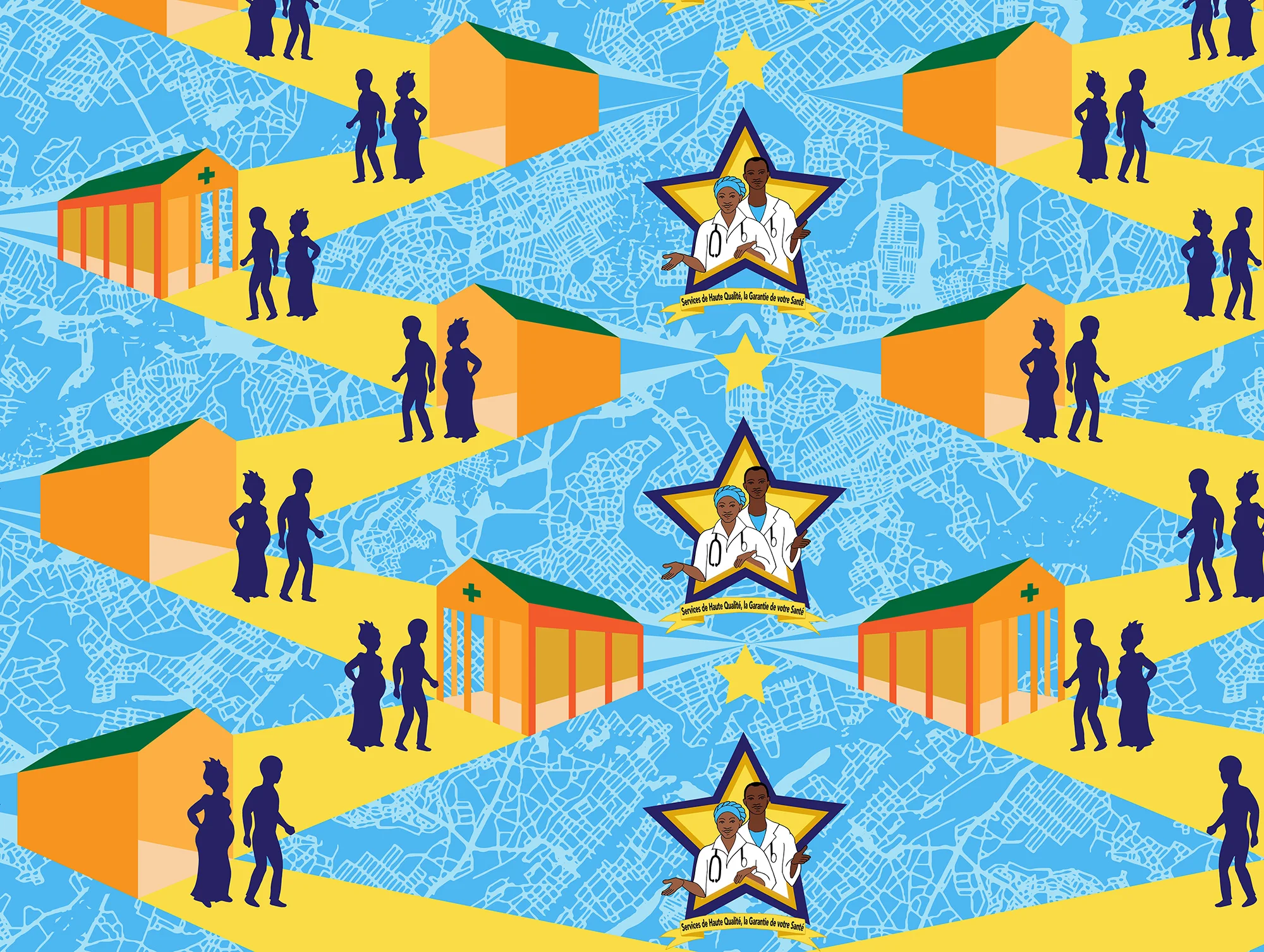 In early 2017, GAIA developed the “Gold Star Clinics” cloth pattern in close collaboration with the HC3 team in Guinea to generate a more widespread recognition of the Gold Star branded health centers. The team’s goal was to significantly impact maternal, neonatal, and child health outcomes by encouraging women to attend pre- and postnatal care visits and give birth at a Gold Star clinic. The pattern tells the story of a pregnant couple that leaves home to visit their community clinic for prenatal care and delivery. Pathways between homes and clinics symbolize the countrywide network of Gold Star clinics. Fabric was given out to 500 women who completed prenatal care visits and gave birth in a maternity ward at one of the Gold Star facilities. They are encouraged to wear the cloth and share their experiences with friends and neighbors. These femmes phares, or “exemplary women” will be the initial momentum for a wave of change to create a new social norm of using health centers for prenatal and maternity services creating a very important improvement in maternal health.